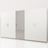 Optez pour ce dressing de luxe et appréciez sa capacité de rangement. Avec ses dimensions généreuses de 310x40x180cm, ce dressing offre un espace de rangement spacieux et raffiné pour vos vêtements et accessoires. Miroir central, portes battantes. Possibilité d’ajouter des éclairages internes.