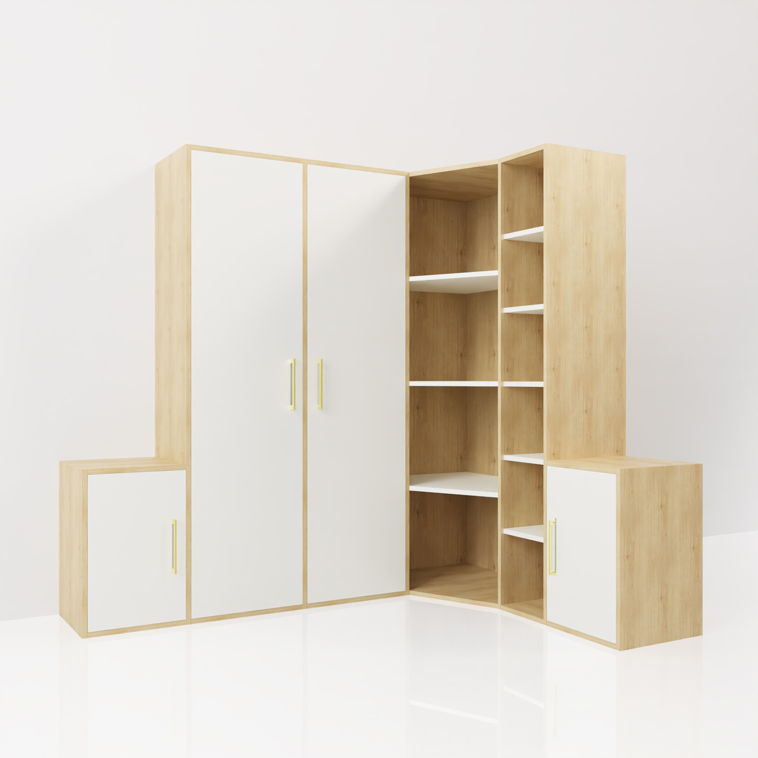 Ce dressing en forme L est conçu pour répondre à vos besoins de rangement tout en ajoutant une touche d’élégance à votre chambre.