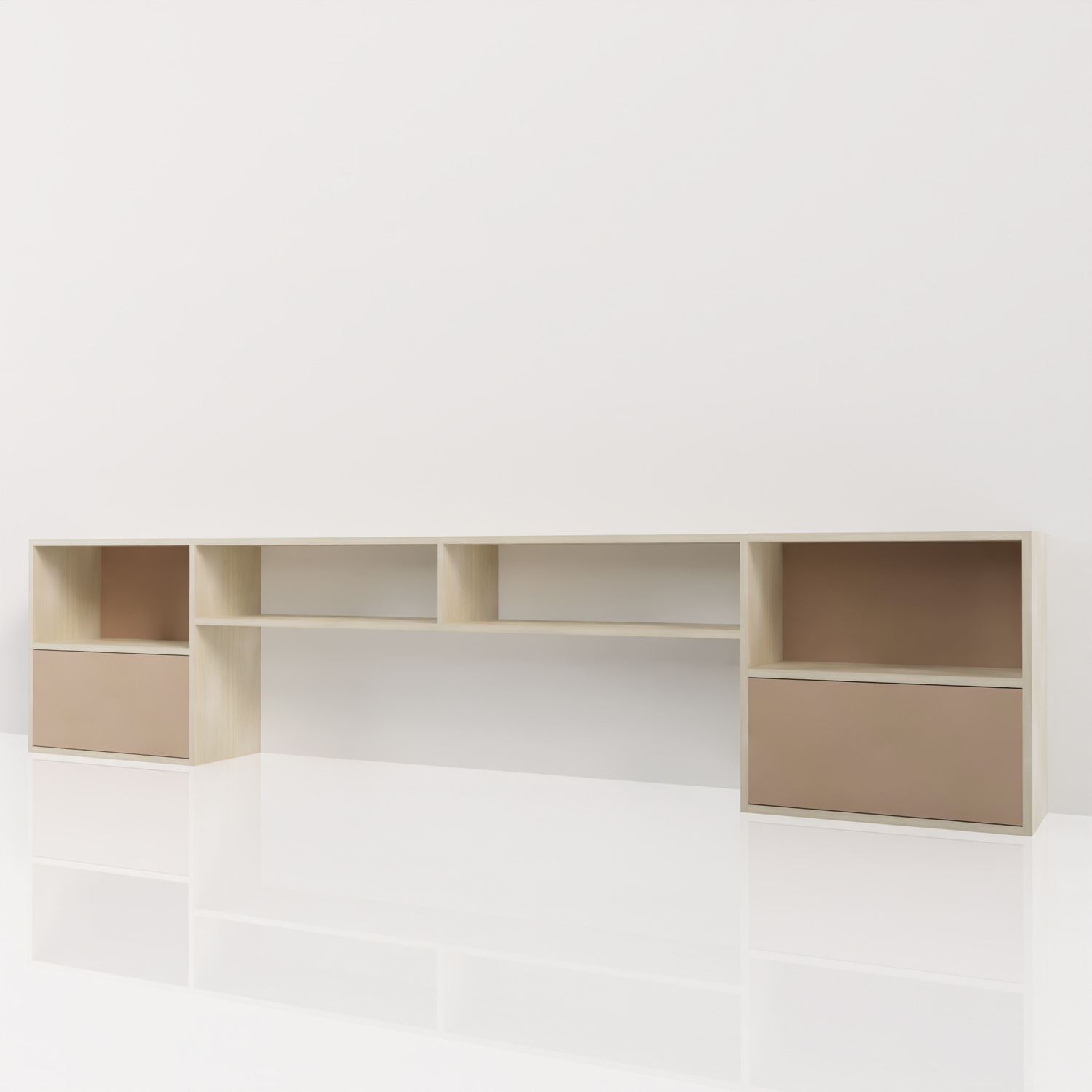 - Composition: 4 étagères larges et deux tiroirs spacieux