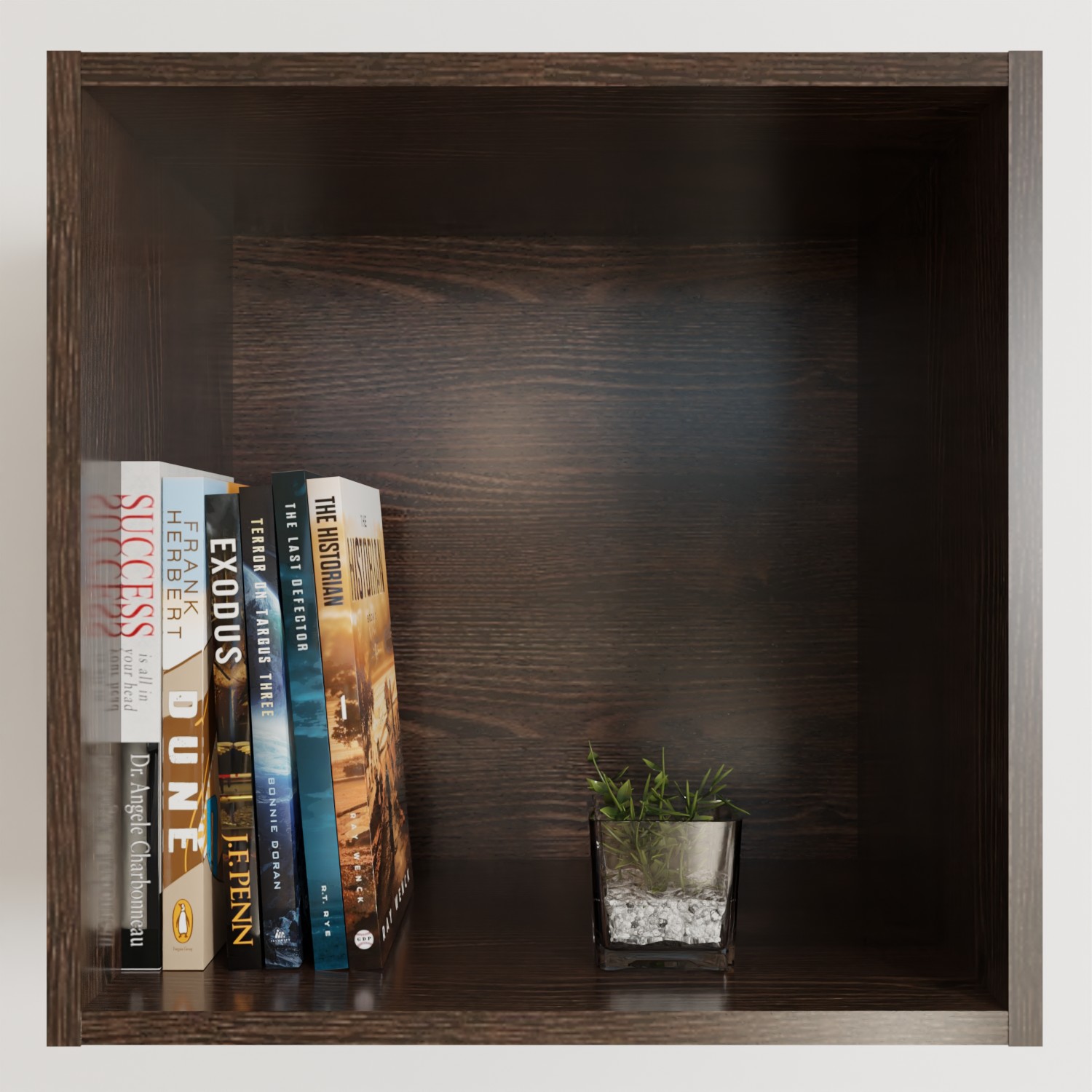 Proposée ici en couleur Chene thermo noir, dimensions 35x35x25cm